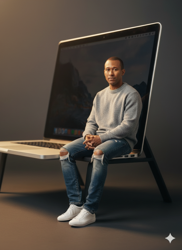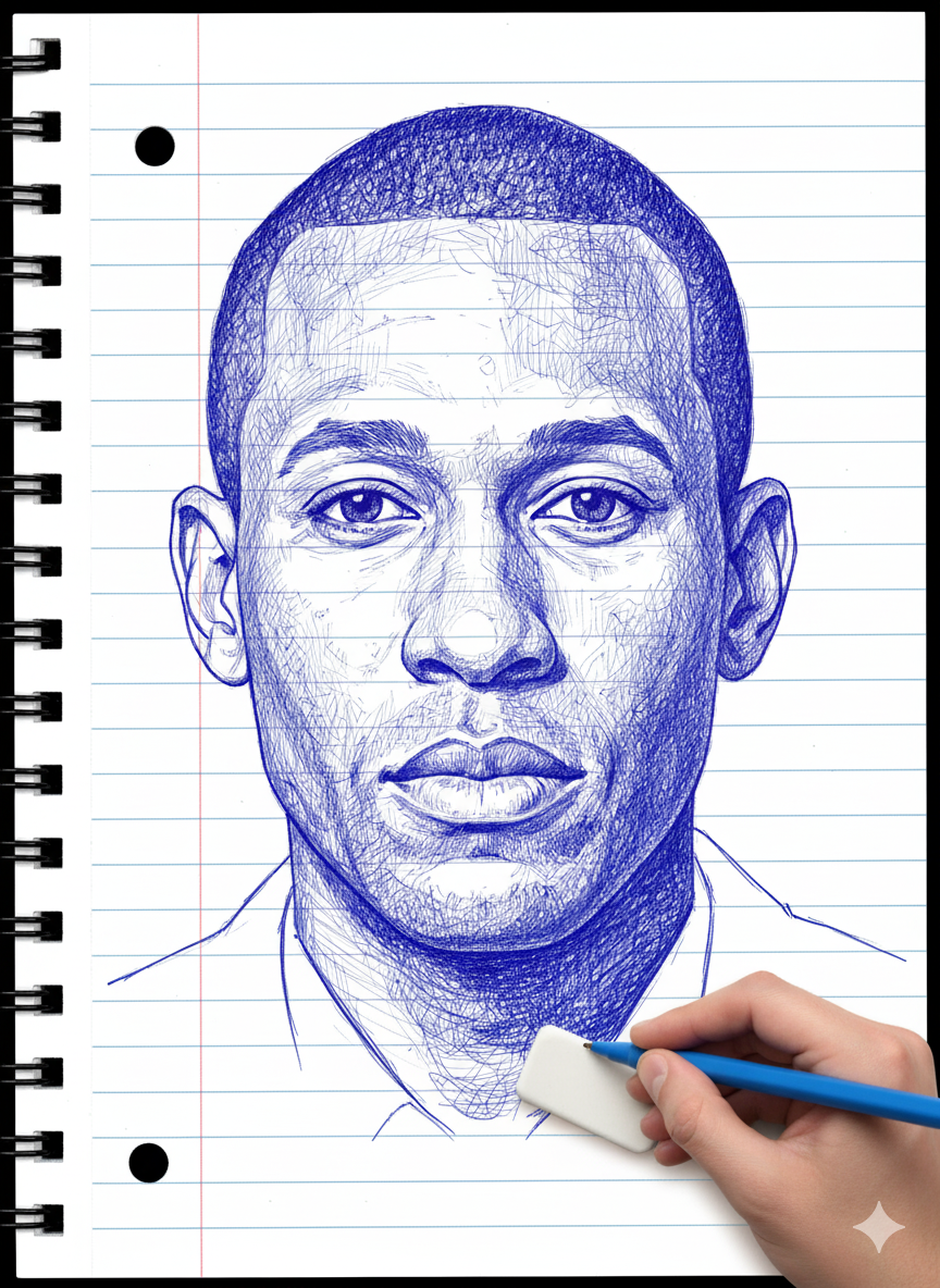 Face Reference: [Use the real face from the provided photo reference for the man’s expression and features.]