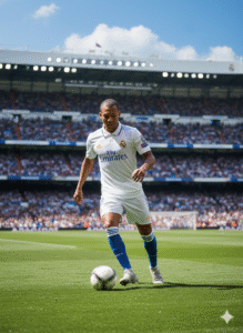 Estilo de fotografia esportiva profissional, aparência 100% fotográfica – não ilustração, não arte digital, não 3D. Sem mudar o rosto fisionomia ou estrutura corporal