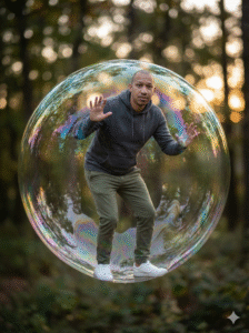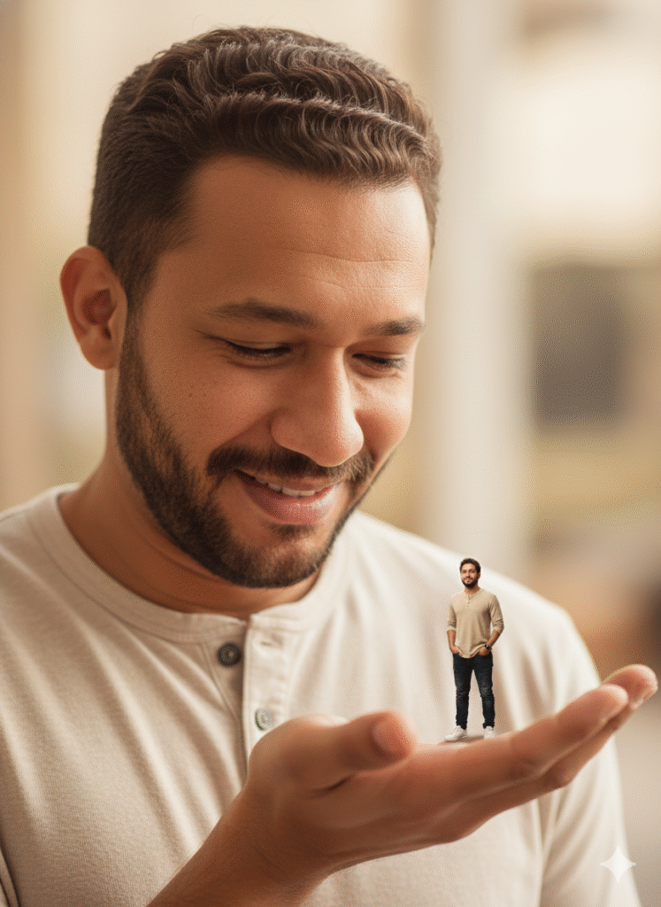 Framing: Eye-level shot with the man, creating an immersive “tiny world” feeling.