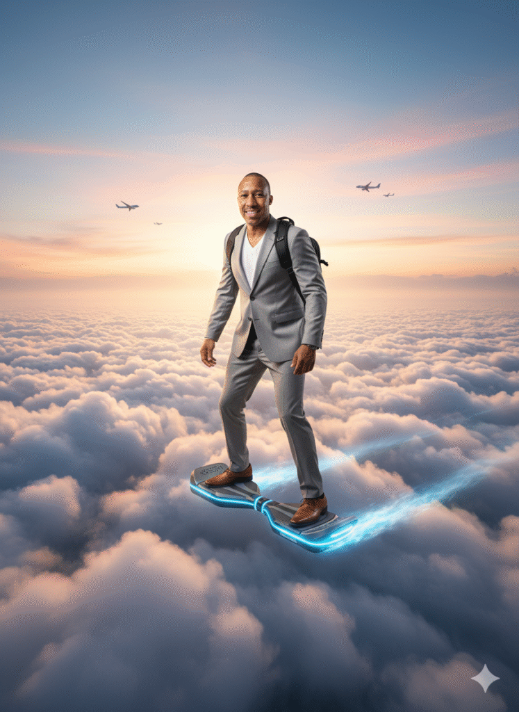 Um homem com a mesma caracateristica da imagem, relaxado e sentado em um assento de couro luxuoso dentro da cabine de um jato particular. Ele veste um pijama de seda ou cetim cinza-azulado elegante. Ele tem as pernas cruzadas e segura um copo de uísque com gelo na mão direita, olhando pela janela. Pela janela, é visível uma paisagem urbana noturna brilhante de uma grande cidade (como Nova York ou Tóquio), vista do alto. A cabine do avião é iluminada com luzes suaves e quentes, e é detalhada com painéis de madeira polida. Fotografia de estilo de vida luxuoso, hiper-realista, iluminação noturna interna e externa contrastante.